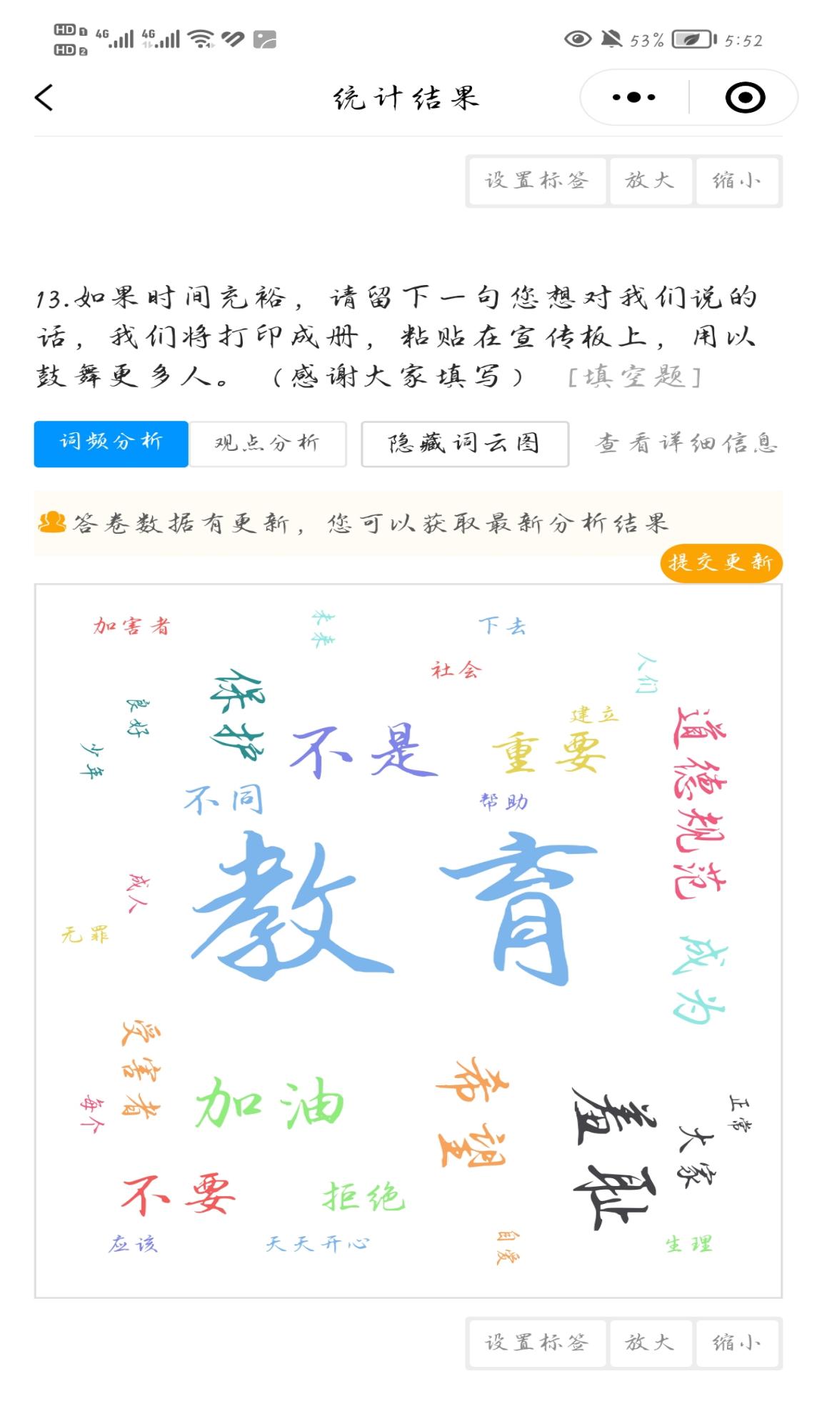 图为实践队据统计数据制作的关键词云图 悦性韵实践队队员 孙明瑜 供图