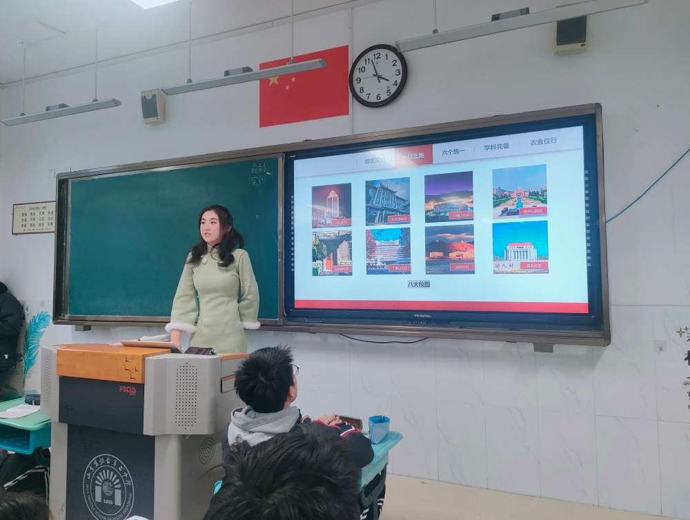 下午第三节课上课后,李欣芮来到杨文卿所任教的班级进行宣讲,向高一十九至二十二班选考历史的60余名同学介绍了山东大学(威海)的学校概况、招生政策、学院与专业设置等基本情况,鼓励大家积极报考,并亲切分享了自己高中阶段的学习经验。在宣讲过程中,李欣芮向同学们发放了山东大学(威海)招生简介宣传页、宣传册,并组织同学们填写了意向报名统计表,充分起到了动员鼓舞的作用。四点半,宣讲活动结束,团队成员与老师们拥抱告别并拍照留念,随后于西门离校,至此,此次调研宣讲活动圆满完成。
