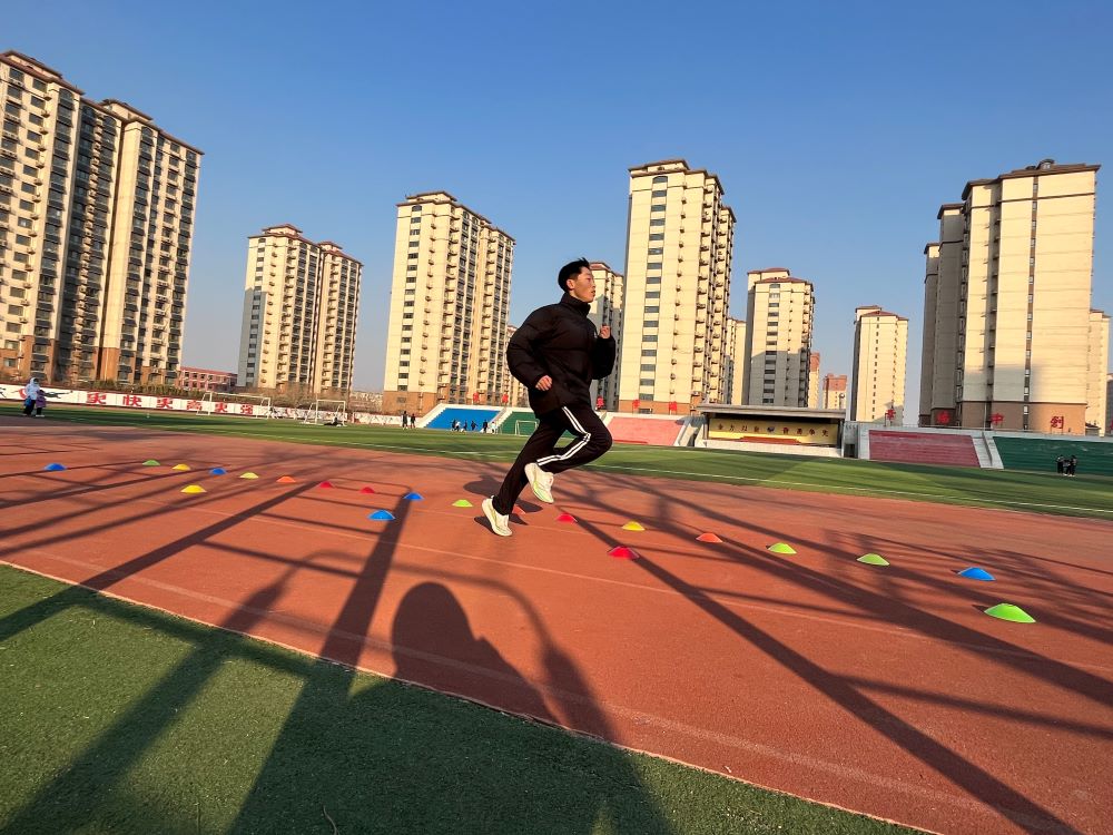 为进一步提高学员在短跑项目上的成绩,实践队员为学员们摆放好体育专用步幅步频练习道具,通过为学员们测量好道具之间的距离以及向学员讲解使用方法,学员们积极的投入到步幅步频的训练当中(照片左侧为步幅,照片右侧为步频)。在训练过程中,向学员们讲解了步幅步频在短跑项目中的重要性,实践队员也认真的说:“步频可能很难提高了,但是步幅可以飞越提高,成绩也一定可以快速提高。”
