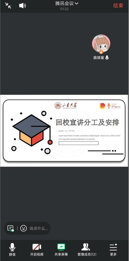 2月7日,社会实践团队通过线上会议详细布置了活动的具体安排和分工。队长曲靖童以高度的责任感和组织能力,确保了每一位成员都能明确自己的职责,从而保障了宣讲活动的顺利进行。