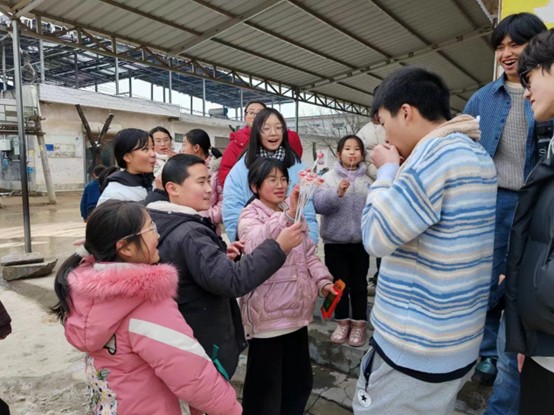 1月20日的这天下午,支教队的每一位成员或许都不会忘记,本是一次稀松平常的中午饭后散步时光,但走至学校门口,却因一拥而上的热情的小朋友们而增添上了别样的风采。小朋友们人手一捧五颜六色的棒棒糖,簇拥着支教队的老师们展现出了对支教队的到来的几大的真诚与热情“老师,给你们甜甜的糖果,欢迎你们来到这里给我们上课!”最朴实的话语,最普通的糖果,最真诚的笑容,却在每一位支教队成员心里砸起了涟漪,其中一位支教队成员表示“如果说在刚来到这时,我还在为严寒的天气而感到难以忍受的话,那小朋友们给我们送的糖果,则坚定了我无论如何也要给小朋友们带去有趣和真正有价值的课堂的决心。”邓庄小学外仍是白皑皑的积雪一片,但支教队成员们内心因初来乍到、无所适从垒起的冰霜雪墙早已消融殆尽,他们即将开启一段温馨治愈的旅程。