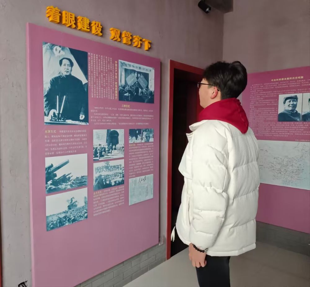 首先,实践队成员来到了“政治争取、促成起义”展厅。学习了解到国民党军队响应中国共产党号召,由陶峙岳将军领衔联名通电,宣告西北国民党军归向人民民主阵营的故事。展厅通过展示历史实物、油画作品、光影视频等,向大家真实地展示了酒泉起义的筹备、爆发、战斗以及失败后继续抗争的全过程,让成员们更加直观地了解这段历史,感受历史的沉重和深刻。接着,成员们来到“解放西北、进军河西”展厅。通过展厅的张张革命地图,成员们了解到酒泉地理位置的重要性与特殊性——南依祁连山、北枕古长城,酒泉自古就是“诸夷入贡之要道、河西保障之襟喉、东西通衢之要冲、军事边防之重镇。走过展厅,成员们了解到酒泉胜利解放不仅为胜利进军新疆奠定了坚实基础,也加速了人民解放军解放大西北的进程,同时也为保护新中国油田事业发展建立了不可磨灭的历史功勋。“革命胜利的取得充满着苦难和辉煌、曲折和胜利、付出和收获,是无数中国共产党和中国人民用鲜血、汗水、泪水写就的。我们应该珍惜和传承先辈的革命成果,继承这份鲜活的革命精神。”成员王浩如是说。
