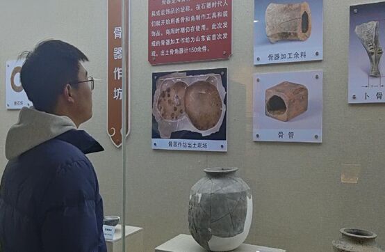 根据讲解员的介绍,新馆一楼为平度历史文物展厅,西厅为史前文化展厅,重点介绍岳石文化时期的历史;东厅为平度通史展厅,重点介绍东周至汉代的平度历史。二楼东厅为临时展厅,现布置为馆藏精品拓片展;南部长廊设置观众休闲区,并在此区域将平度市“三产”及非遗技艺集中展示;西部为办公及社会教育区域,可进行研学体验。原崇德宫展区目前为平度三埠李家遗址考古发掘成果展,以及碑廊、碑林。