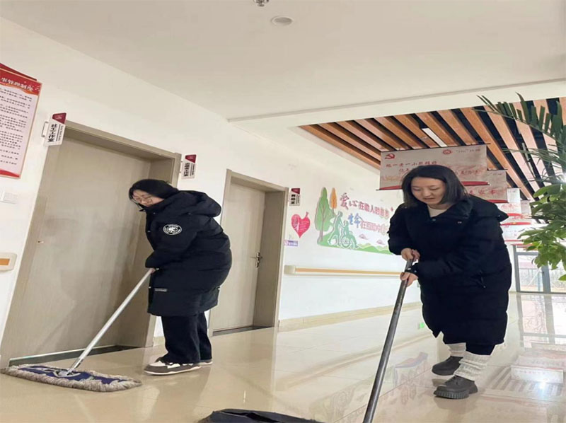 在按摩过程中,志愿者们观察到地面有些许脏乱。于是,大家主动承担起了打扫卫生的任务。心动不如行动,志愿者们立即行动起来,在欢声笑语里,很快就把地板整理的干干净净,将原有的物品进行分类并归位。也做到了事情的有始有终。