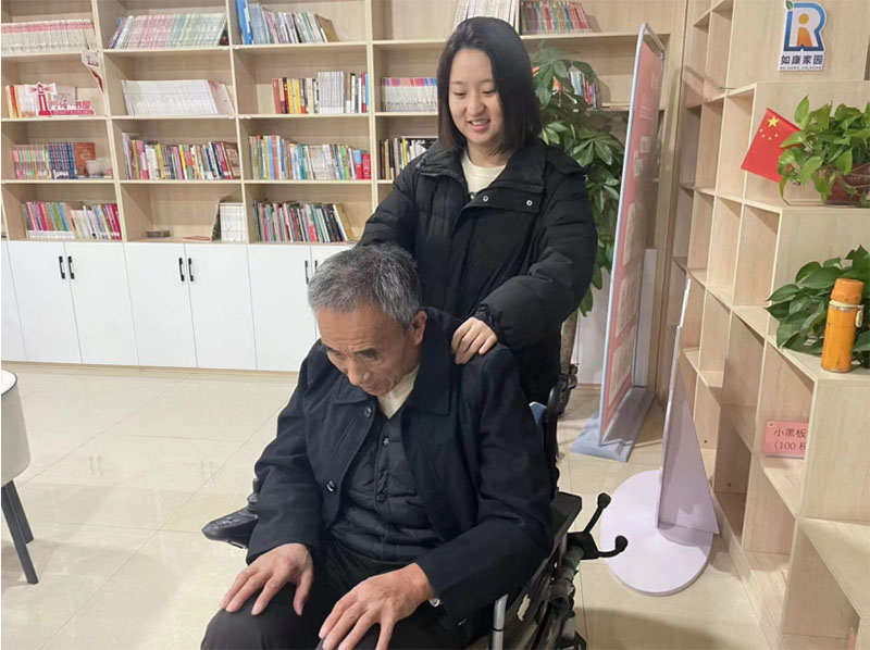 随着志愿者们的到来,社区养老院中传来一阵阵欢声笑语,处处充满了温情。志愿者注意到一位老人的腿脚不太方便,在了解了老人身体状况后,志愿者也通过自身所学到的理论知识去给老人按摩缓解通过老人舒展的眉眼,志愿者也有了自豪之情。