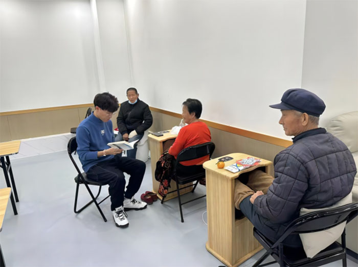 很多老人们由于年纪增长视力下降,导致他们往往在读书看报时遇到困难,考虑到这种情况,在老人们活动的时间,实践团成员们积极地为老人们读书听,老人们听的很开心,很满意。
