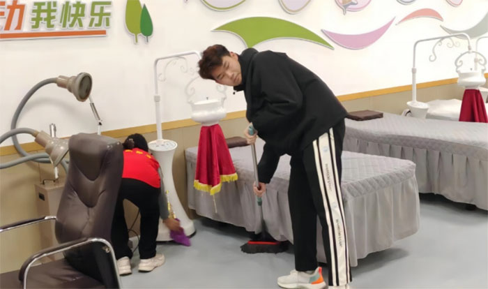 在养老院负责人的安排下,成员们开始帮助他们打扫卫生、整理房间,保证老人干净良好的生活环境。每个人都带着关爱的心,做着关爱的事,把爱付诸了实际行动。