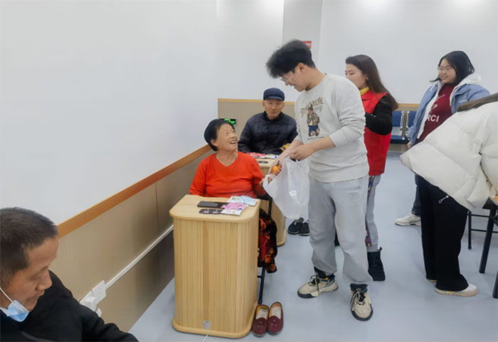在春节前夕,实践团来到养老服务中心,在养老院负责人的指导下为老人做一些力所能及的小事。