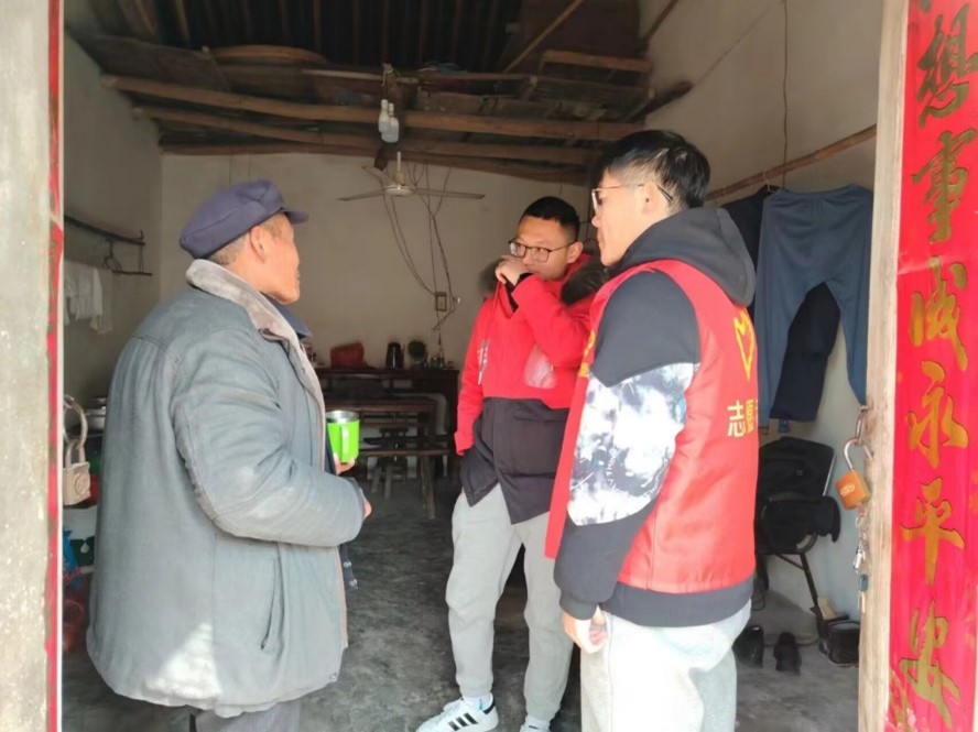 图为实践队员跟随兴塘村村委对村中独居老人进行日常慰问。兴塘村村委 摄