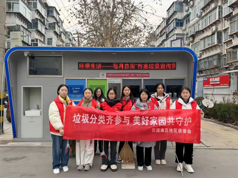图为实践团成员参与社区垃圾分类活动宣传