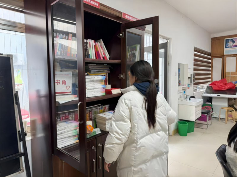 图为实践团成员整理社区文件书籍