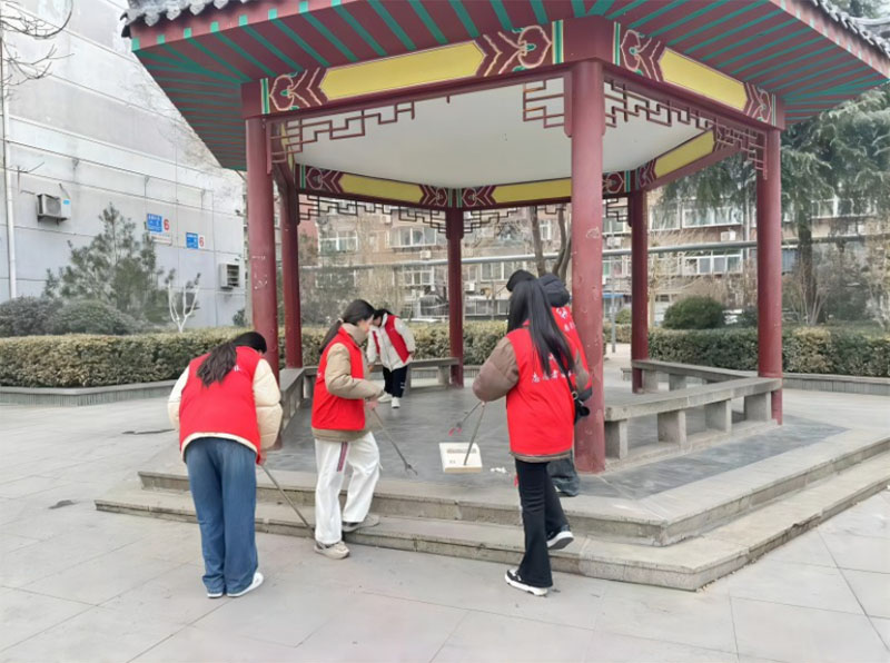 图为实践团成员打扫社区凉亭