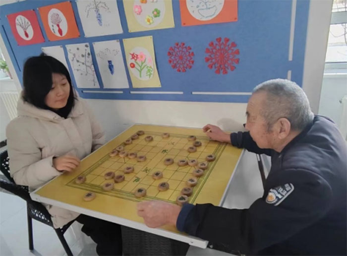 初到此地,“青春无限”实践团向工作人员表明来意。在工作人员安排下,了解了服务中心的环境和老人们的情况。面对实践团成员们的到来,老人们略显拘谨,但随着交流的深入,他们的脸上逐渐绽放出温暖的笑容。每天午饭时间后,实践团成员们会陪老人们一起下棋、聊天,听他们讲述过去的故事,也向他们分享了大学校园里的生活。这种跨越年龄的交流,给老人们带来了活力和欢乐。
