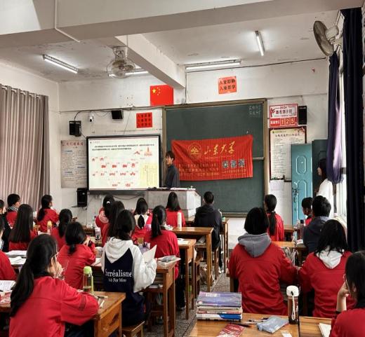 跨越山海,奔赴热爱。2024年2月23日,山东大学彩云之队回访母校宣讲团(以下简称“宣讲团”)来到云南师范大学附属中学,为在校师生宣讲山东大学招生政策信息、人才培养体系和学科建设特色等。云南师范大学附属中学杨静黎老师到会指导,高二年级学生参与宣讲会。近一个月来,山大彩云之队在云南省三个州市组织开展了多场宣讲活动,以“汇聚英才,为国育贤”为主题先后在云南师范大学附属中学、昆明市第一中学、云南民族大学附属中学等优质生源中学展示了“百廿”山大风采,云南师范大学附属中学作为山大彩云之队在云南省宣讲活动的最后一站,本次宣讲活动将为山大学子在云南省的宣讲足迹画上圆满的记号。