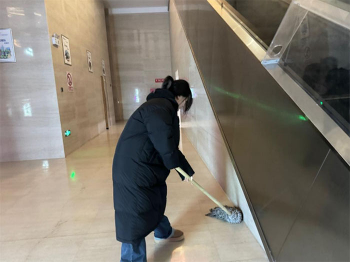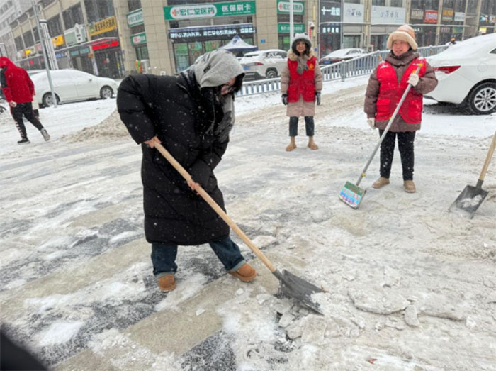 春节刚过,一场大雪降临淄博市,为了保障居民的出行便利。大雪刚过,实践团成员就与社区清洁人员一起扫帚、铁锈等清洁工具,对社区内街道楼道、公共活动设施、公共宣传栏、社区主干道等重点区域进行清扫作业。在第一时间保障了居民的出行安全。
