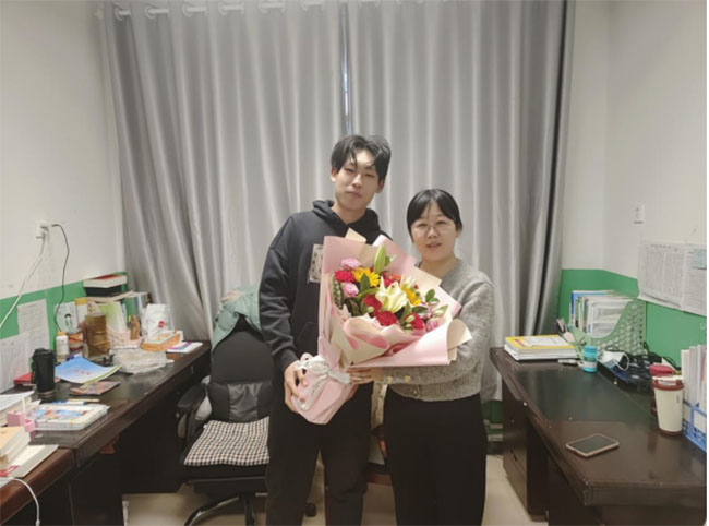 任玉玉老师特别邀请包昊宇来到高二13班。在那里,他与同学们分享了自己高考备战的经验、大学学习的策略以及对于未来的规划。他的话语真挚而感人,激励着在座的每一位同学为梦想而努力。他用自己的经历告诉大家:高考只是人生的一小步,关键是我们要有明确的目标和不懈的努力。
