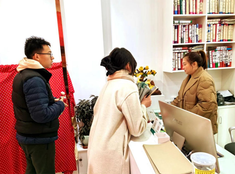 2月2日,实践队队员在柯桥区中国轻纺城走访商户。李轶宸 摄