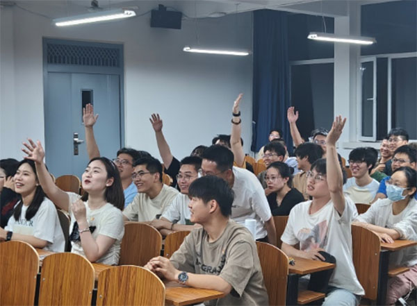 交流互动环节中,吕晨睿、李忠航,钱学尧等同学们的发言彰显了青年在国家发展中的重要角色,他们深刻理解青年所肩负的历史责任和时代使命,号召青年群体积极融入国家现代化的宏伟蓝图,以热忱和实际行动,为国家的繁荣昌盛贡献青春力量。