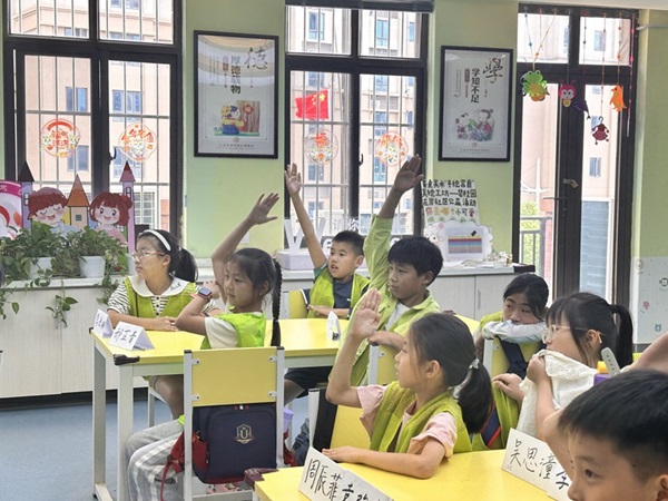 (图为孩子们积极举手发言 吴昕予摄)