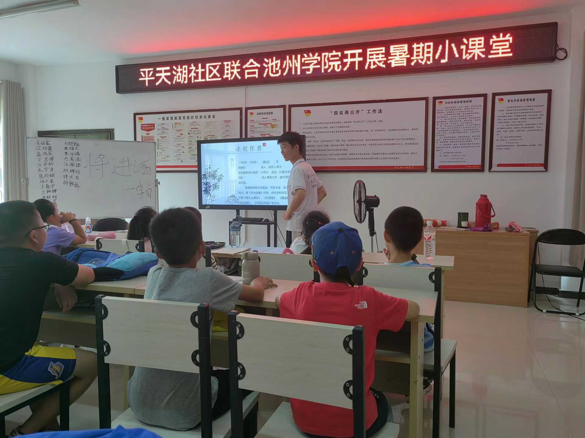 2024年7月10日,为了进一步加强赴池州市贵池区“田间课堂”实践团与平天湖社区的合作关系,实践团成员准备从打牢学生们的学习基础出发,以“因材施教”的教育方针激起学生们的学习兴趣,让学生们主动融入学习氛围中。