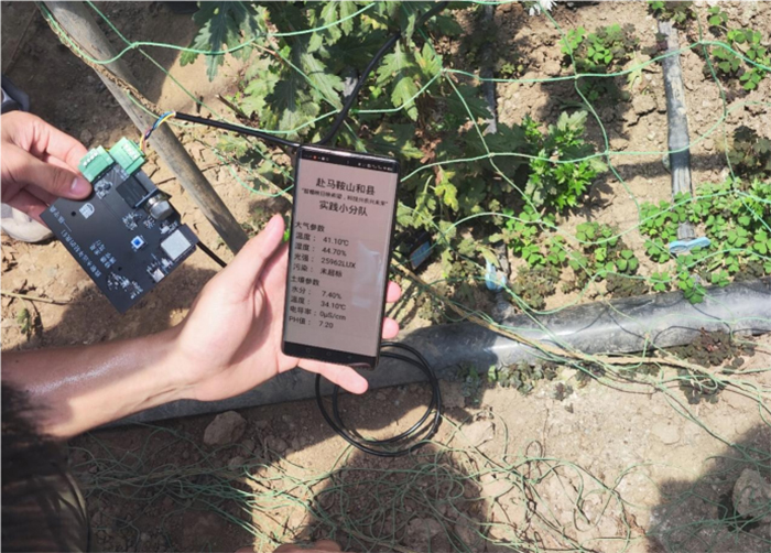 实验证明实践团队制作的监测系统不仅能实时显示影响植蔬生长的主要环境因素,还可通过手机程序检测并结合植蔬生长曲线确定植蔬浇水的时间和频率。这一成果给产业园节约了大量的人力成本和资源材料。现代化农业产业园的负责人在队实践团队表达感谢的同时也鼓励这群青年学子好好学习,响应国家的号召,发展自身专业优势在更多领域大放光彩!