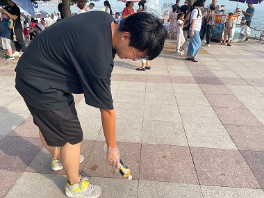 【中国石油大学(华东)机电工程学院7月12日讯】(通讯员:曹聪)实践队成员首先对景点的垃圾进行了全方面的清理,用行动践行了青年担当,在广大游客中传播正面能量。随后实践队成员对一些游客进行了采访和交流,大部分游客与实践队成员有相同的想法,都十分重视环境问题。一部分游客也提出了自己对于一些环境问题的看法,与实践队成员交流了日程生活中的减少环境污染的措施。
