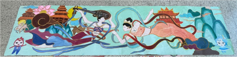 此次长卷绘画的主题围绕“海上敦煌”展开,同学们通过丰富的想象力和创造力,将敦煌壁画中的经典元素与海洋文化相结合,创作出了一幅既具有传统韵味又不失现代气息的长卷作品。