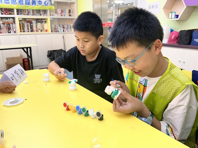 活动现场,孩子们的热情如同夏日阳光一般灿烂。在“七彩童心”团队的精心策划下,美育特色课堂分为色彩知识讲解、石膏娃娃绘画实践和作品展示三个环节。志愿者们用爱心和耐心,为孩子们打开了一扇通往艺术世界的大门。
