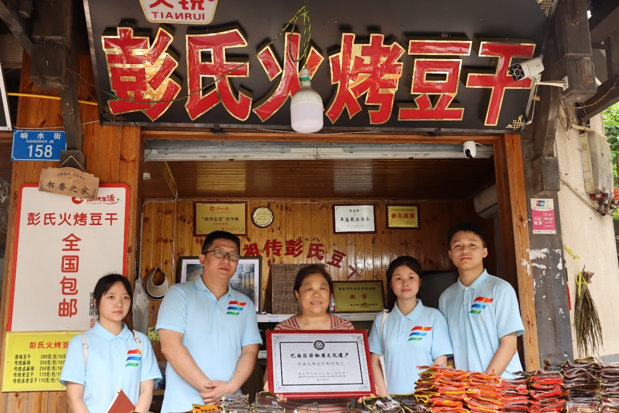(图为乡村振兴促进团成员与彭氏火烤豆干传承人合影 通讯员 陈治宗 供图 )