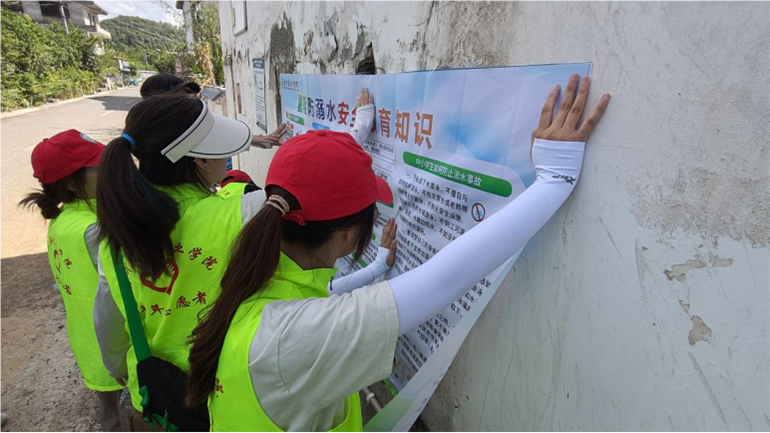 到达小坡村后,践行团深入小坡村各处,通过张贴海报、与村民热情交流介绍等方式,全面细致地了解小坡村整体情况的同时开展了交通安全、防溺水安全等安全意识宣传。