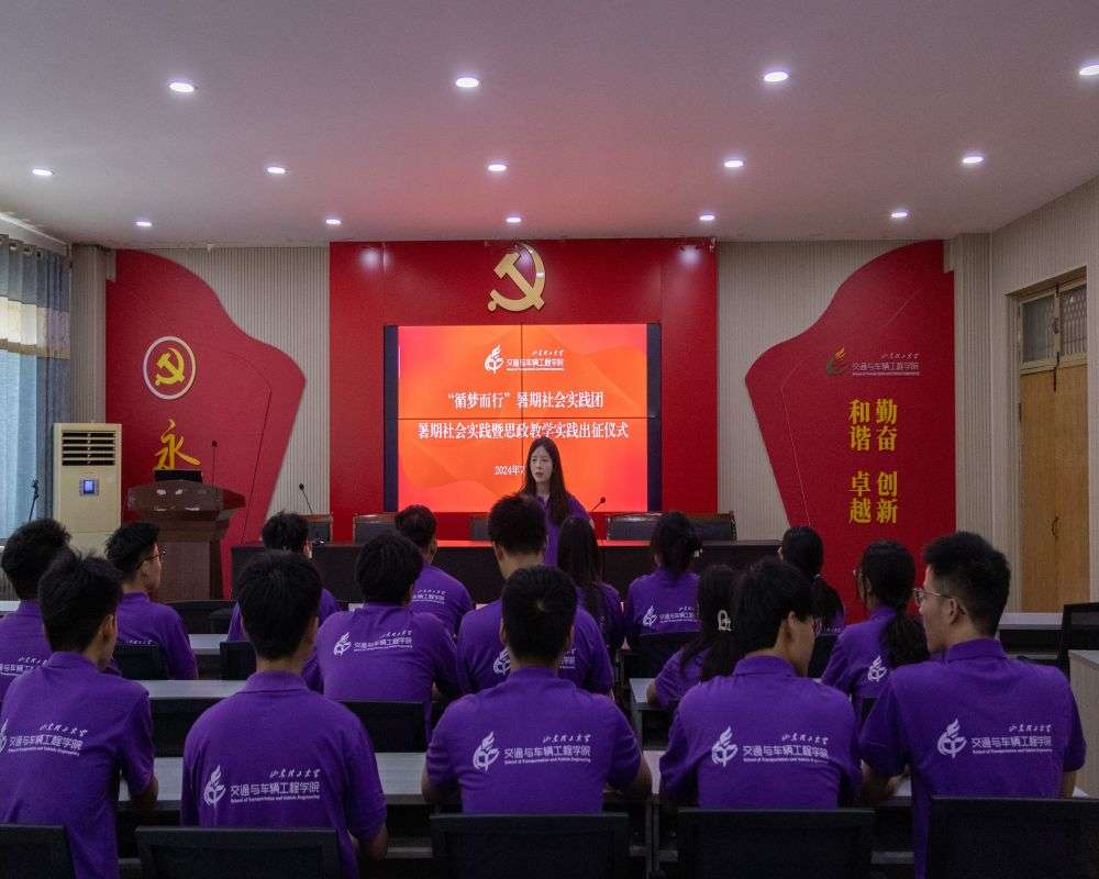 7月16日上午,山东理工大学交通与车辆工程学院“循梦而行”暑期社会实践团出征仪式在12号教学楼217教室举行。团队指导老师周燕燕、思政实践指导老师杨逸群以及“循梦而行”暑期实践团全体成员参加本次社会实践出征仪式。