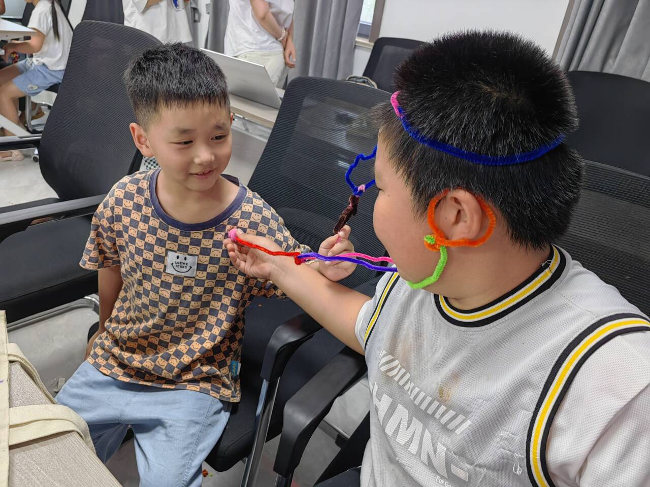 童趣是天真的盒子,里面装满了无限的想象力和希望。为了提高孩子们的动手能力,激发他们对新事物的兴趣和好奇心,“微芒成阳”实践团在7月17日开展了手工创意扭扭棒课程。