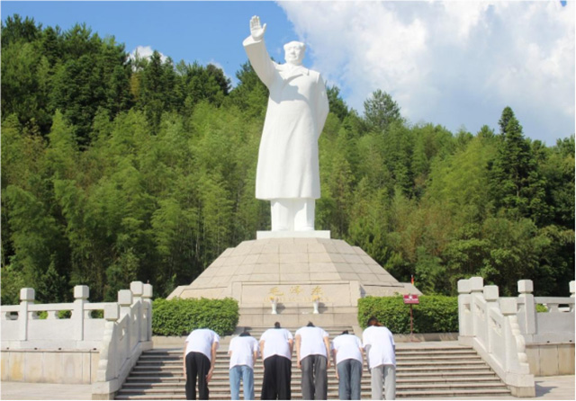 在毛主席纪念园,全体队员献花鞠躬,深情追忆缅怀毛主席的丰功伟绩。