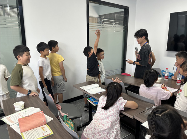 卢老师的文化课则带领孩子们领略了中华文化的博大精深。在课堂上,卢老师与孩子们积极互动,提问、讨论,气氛热烈。当讲到古诗词时,老师邀请孩子们上台朗诵,孩子们踊跃举手,纷纷展示自己的朗诵才华。老师还分享了一些有趣的文化故事,孩子们听得津津有味,不时提出自己的想法和疑问,老师都会一一给予解答。