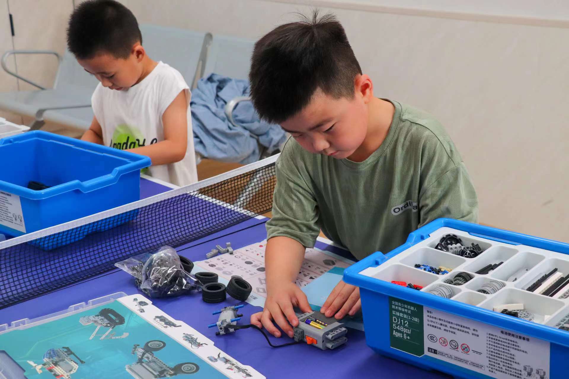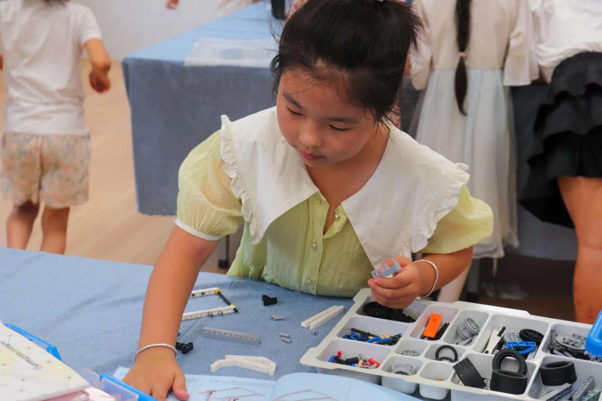 到了下午的自由活动时间,积木成了孩子们的新宠。实践团的成员们带来了各式各样的积木,从简单的拼接到复杂的结构搭建,小学生们展现出了惊人的动手能力和团队协作精神。在一片片色彩斑斓的积木堆砌中,孩子们的想象力得到了充分的发挥,他们搭建起了属于自己的小小世界,而实践团的成员们则在一旁默默支持,偶尔给出一些建议,帮助孩子们克服难题。