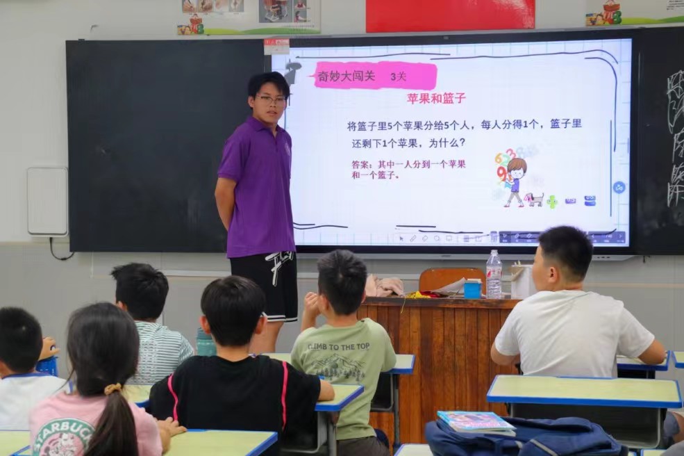在数学课堂上志愿者以“趣味数学”为主题,旨在通过一系列创新的教学方法,打破传统数学课堂的沉闷与枯燥,激发孩子们对数学的兴趣与热爱。志愿者们深知,对于乡村的孩子们而言,数学往往被视为一门抽象且难以理解的学科。因此,他们精心设计了多种趣味横生的教学活动,让数学变得生动有趣。