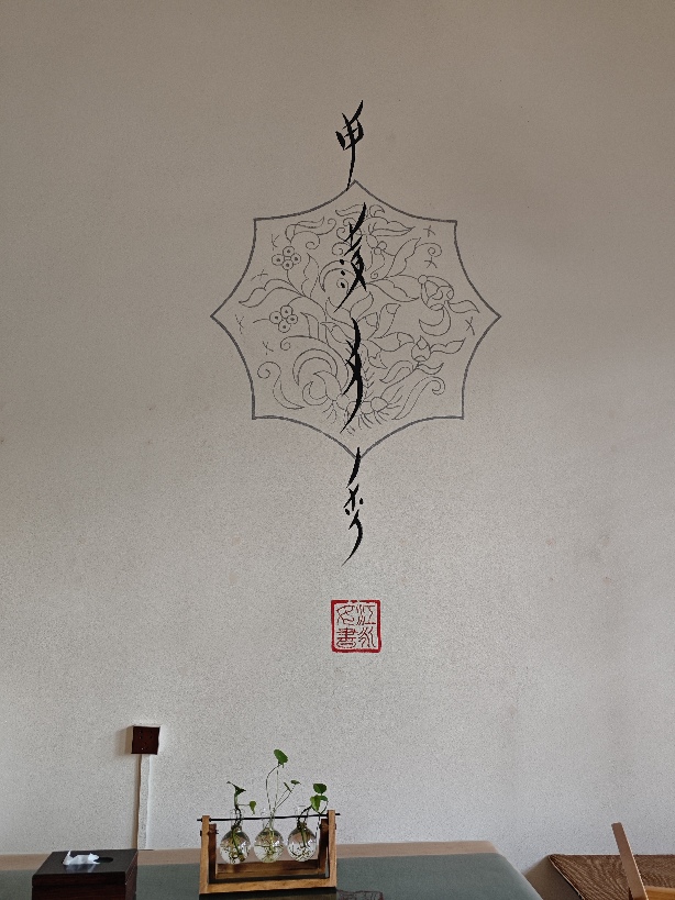 图为“女书手信”店内有关八角花元素的装潢 通讯员 黄莹 供图 “八角花开香满山”,八角花不仅仅见证了古代女子之间坚定的情谊,更穿越时空、为生活在当下的我们送来了美好的寓意。