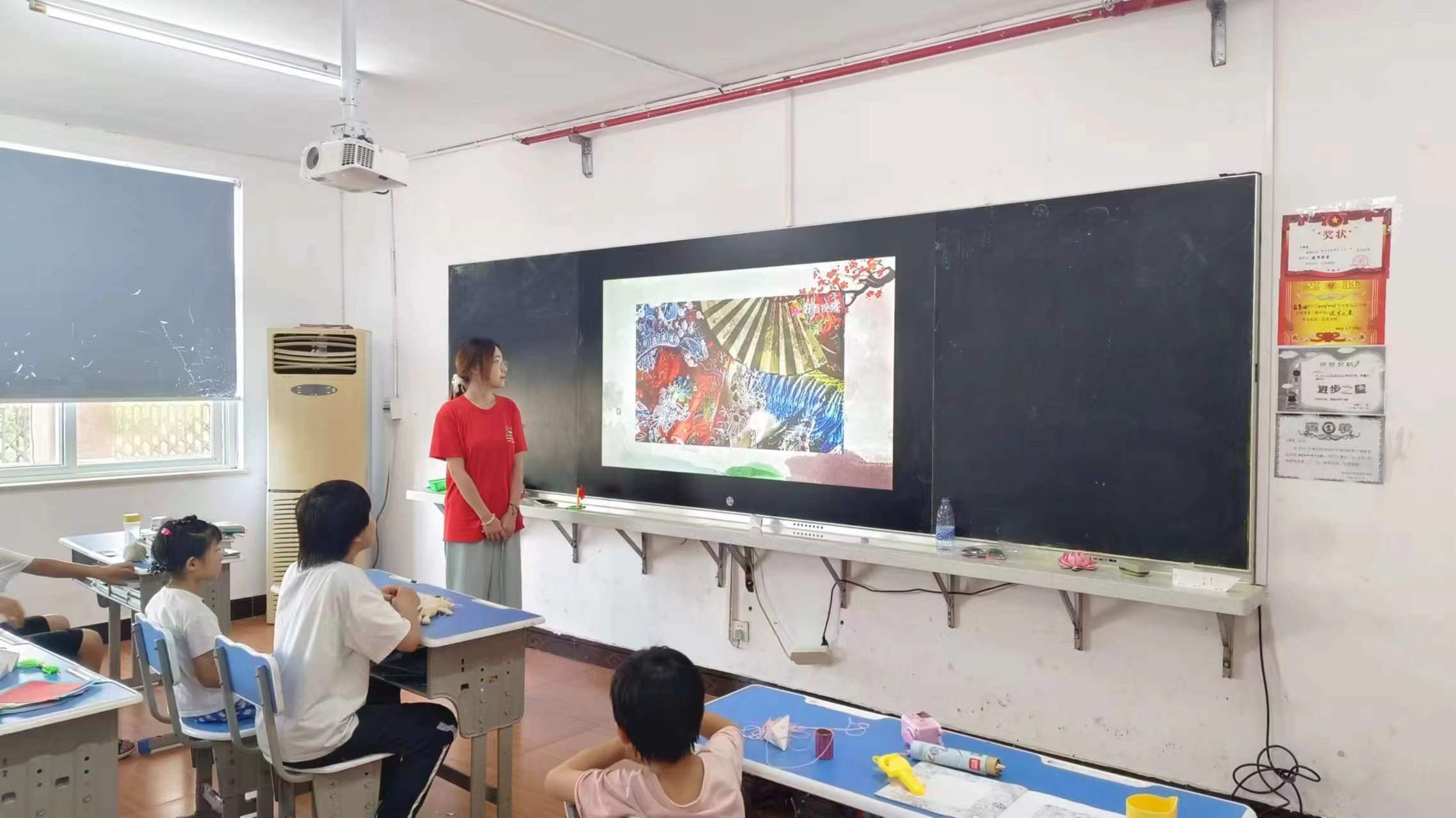 图为志愿者在介绍货币的发展史及应用 紧接着,实践团引领孩子们踏入古代脸谱的创意绘画世界。志愿者们精心准备各色颜料与画笔,并细致讲解不同脸谱所蕴含的角色性格与故事背景。在志愿者的悉心指导下,孩子们充分发挥想象力与创造力,亲手绘制出心目中的英雄形象,每一张脸谱都独一无二,充满童趣与个性。此次活动不仅让孩子们领略了中国传统艺术的独特魅力,还激发了他们的创新思维与艺术潜能。