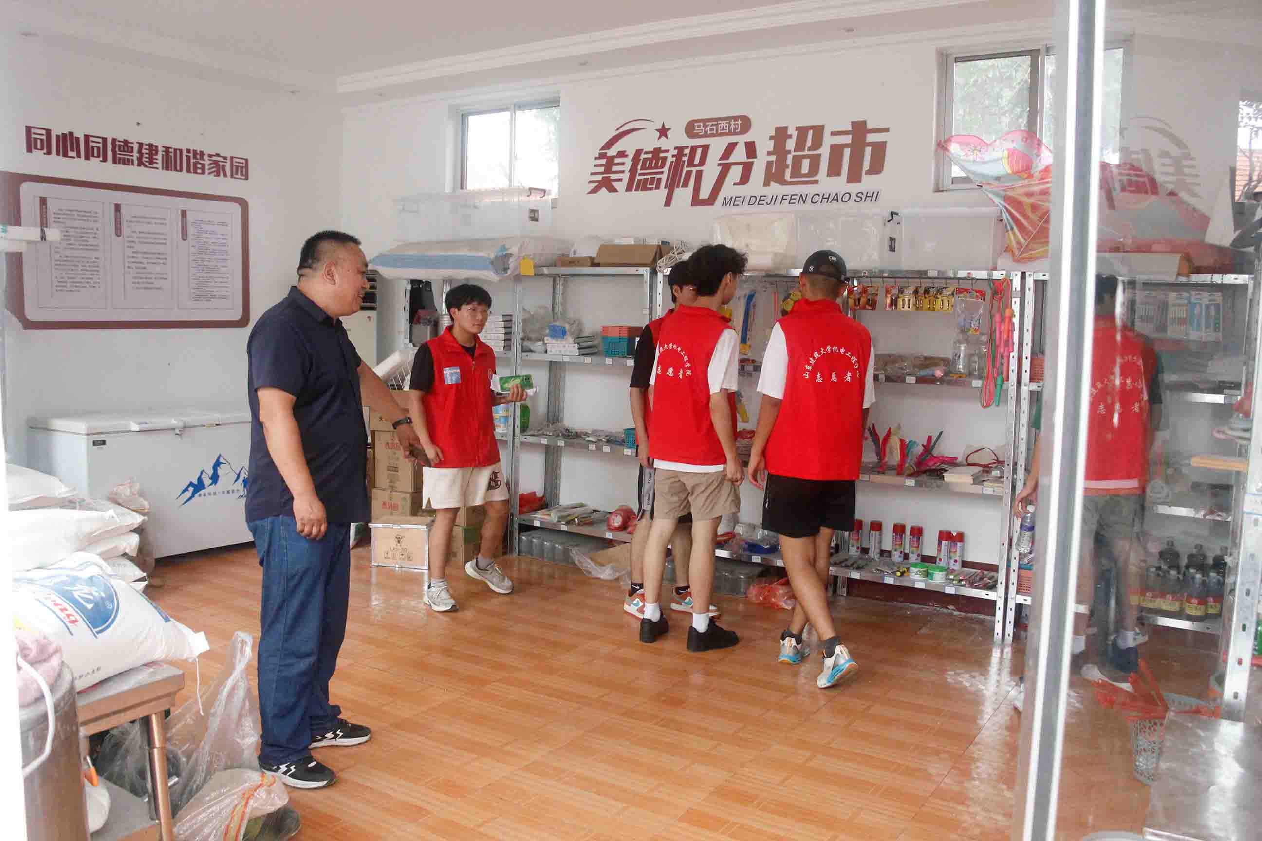 接着,马书记带着团队成员走进村里的“美德小院”。马书记提到当地还设有“村民积分”制度,通过为村民设置积分,激发村民们的积极性和主动性,同时制约村庄乱象。村委根据各户每月的积分发放积分卡,可以在小院内的美德超市里兑换生活物资。同时还有“幸福食堂”为80岁以上的高龄老人提供免费午餐,以及“幸福衣坊”免费为老人们清洗衣物。在参观过程中,团队成员们积极为老人们服务,帮助工作人员给老人们端饭。同时也感受到了村支部对群众的关怀,认识到党建引领对乡村文明建设的重要作用,让乡村治理由无形变有形,使软约束有了硬抓手。这些举措得到村民的一致认可,全村老百姓的幸福感和满意度明显提高。