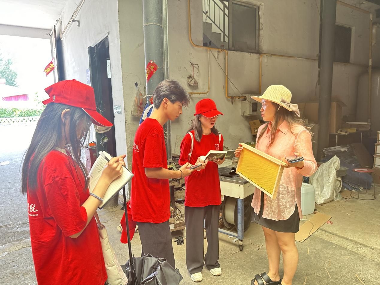 上午,实践团成员们走访了斯威特养蜂机具、春亮冠军脱粉器专卖店以及长葛市好蜂景养蜂机具有限公司这三家各具特色的企业。在与企业负责人的深入交流中,成员们不仅深入了解了当地企业文化的独特魅力,还深刻体会到了企业经营与管理的艰辛与不易。实践团发现,双庙李的企业在当地发展政策和国家乡村振兴战略的双重支持下,正迎来新的发展机遇。这些企业都坚守着自己的初心,在电商浪潮中,凭借过硬的产品质量和创新的营销手段,成功地在市场中站稳脚跟,勇立潮头,令人由衷的敬佩。