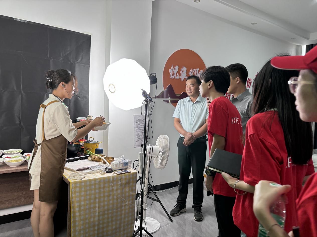 下午,实践团成员在大周镇蜂产品园区主任李红强的带领下参观了双庙李村直播基地,在李主任的介绍下,我们了解到今年的双庙李村,不仅创新了淘宝、阿里巴巴等平台电商发展模式,还举办直播培训班培养本地居民们利用抖音、快手、小红书等卖货平台创造财富。直播带货基地,作为一个新兴的行业实体,已经成为当下中国电子商务的重要组成部分。在参观过程中,实践团队参观了直播带货的各个环节,从选品到直播,再到售后服务,每一个环节都让学生们深感震撼。尤其是看到直播间的火热场面,同学们对直播带货的行业前景有了更深的认识,通过直播平台可以将优质产品直接推向全国,随着直播带货产业链的完善,越来越多的本地居民可以在家门口就业,有力地带动了当地经济的发展。