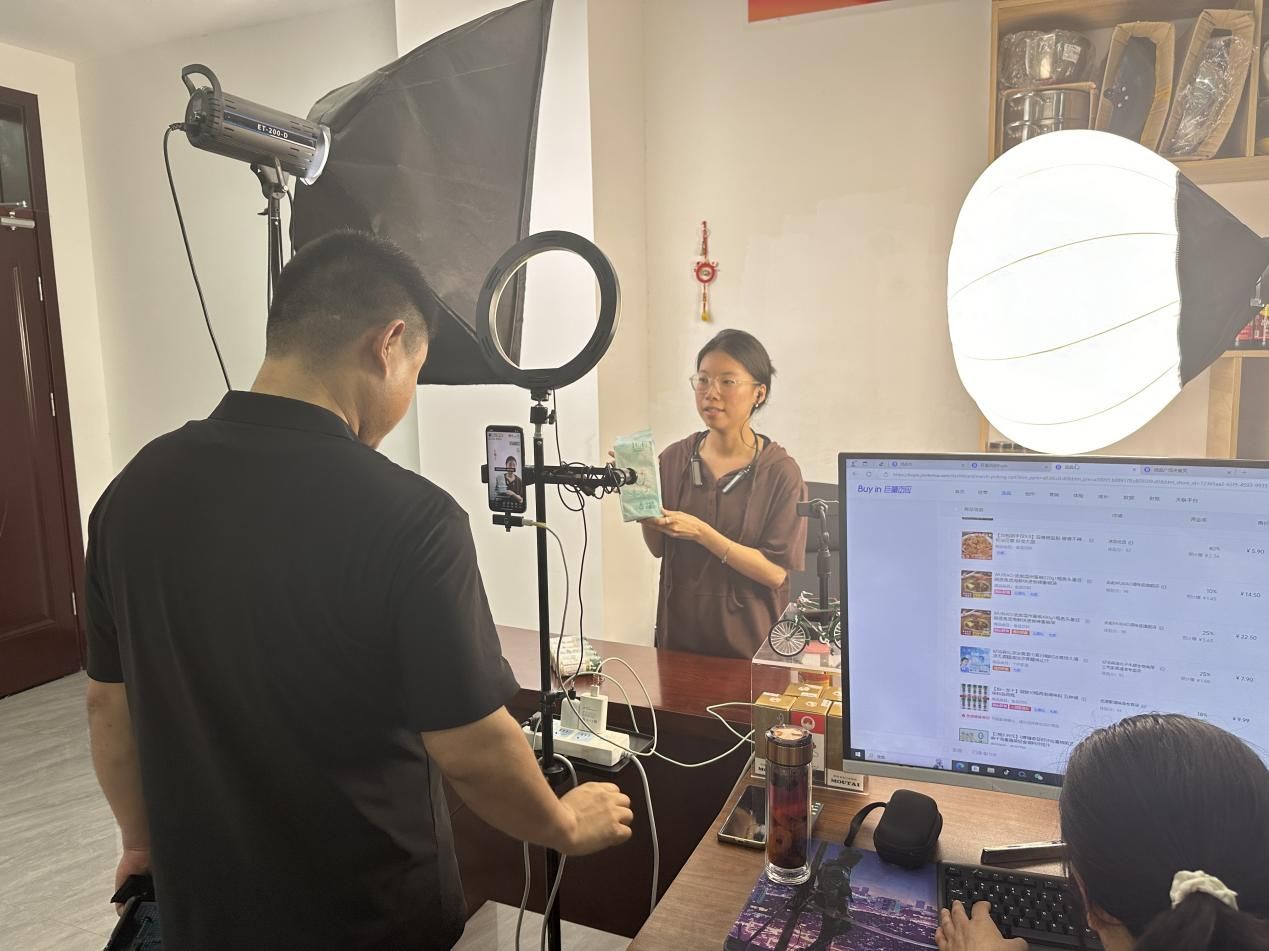 实践团成员进行直播选品