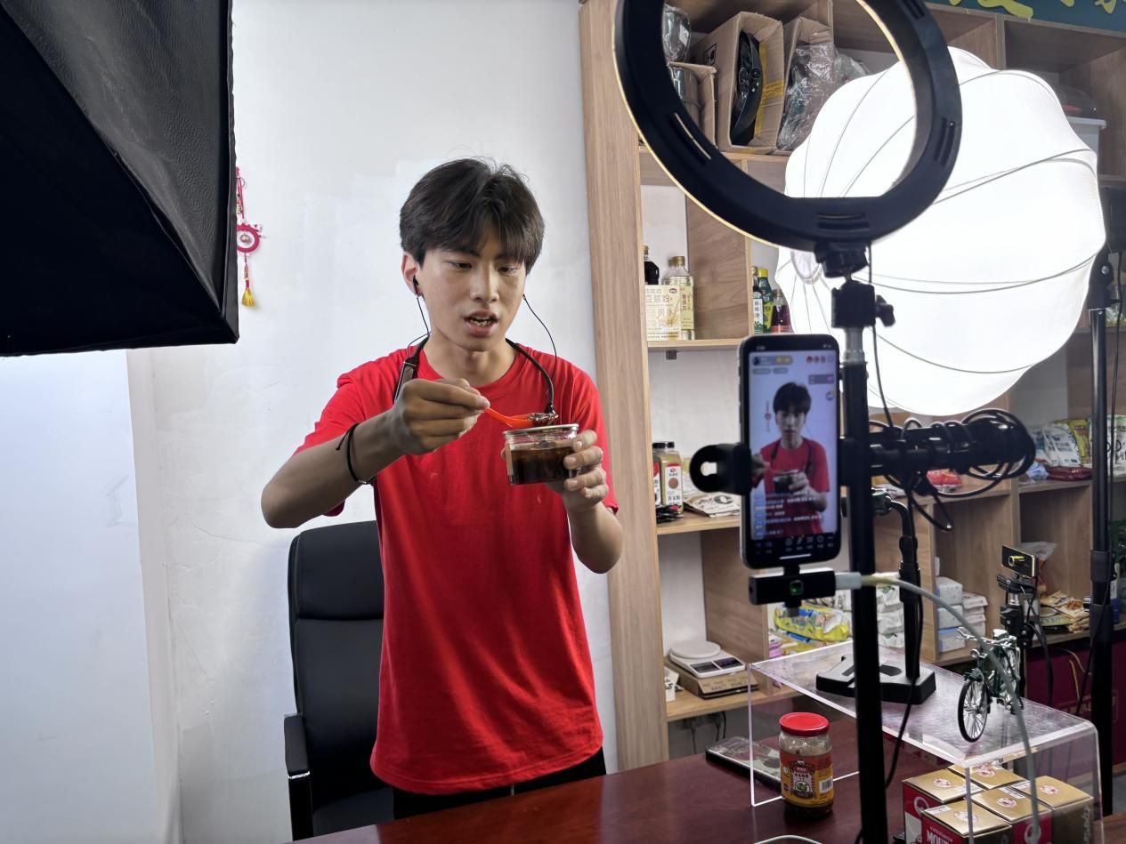 直播期间,大学生主播们以真诚的态度和专业的素养,向观众展示了双庙李村的特色农副产品。他们通过试吃、互动等方式,生动地介绍了鱼头酱、核桃油、调料品等产品,并热情回答网友的提问,与网友们进行了愉快的互动。一个镜头、一张桌子、一部手机,一头连着双庙李村的特色农副产品,一头连着无数网友。通过直播平台,广大网友看到了郑州财经学院商学院的学生们化身“带货主播”,用自己的所学所看展示着双庙李村的特色农副产品,为实现乡村振兴注入了强大的青春活力。