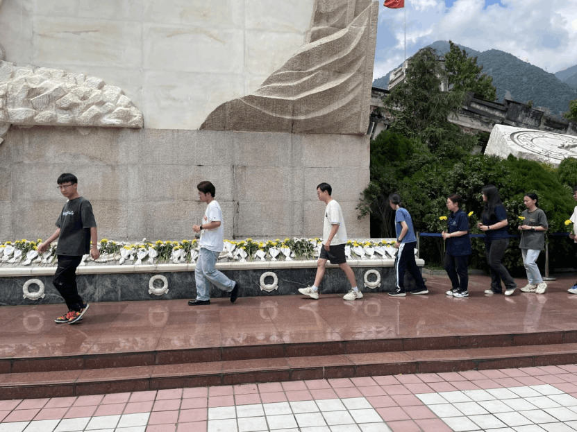同寄哀思 生者自强午后,师生们参观了四川汶川特大地震漩口中学遗址和5.12汶川特大地震映秀震中纪念馆,以此缅怀那场2008年5月12日发生的灾难。在遗址前,全体人员举行了悼念仪式,默哀三分钟,向逝去的英雄和无辜生灵敬献了黄花,表达了深深的哀思。