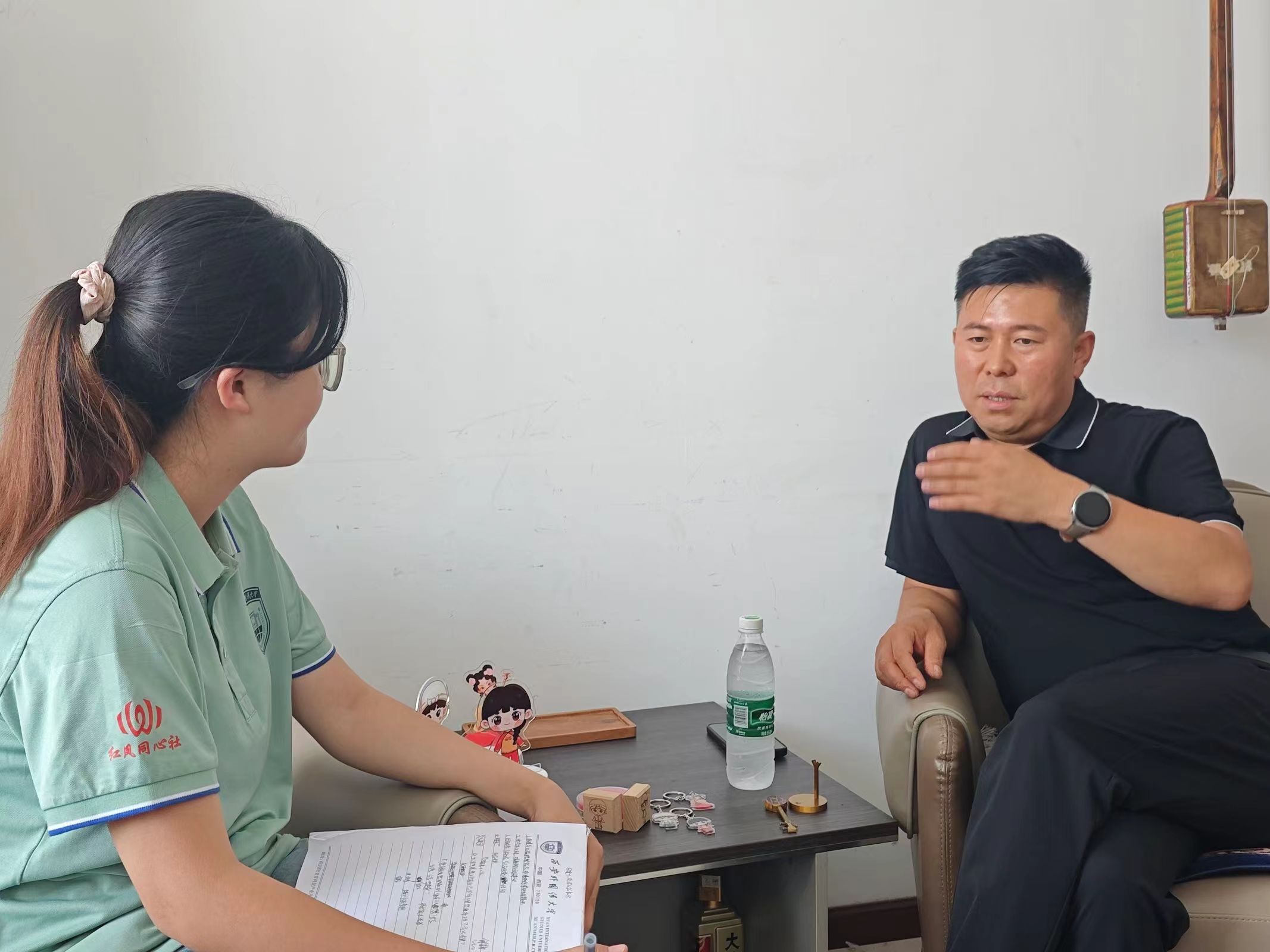 上午十时,调研队踏入延安的文化殿堂——曲艺馆,开启了对陕北艺术的探索之旅。馆内的展览厅、排练厅、说书厅等区域,犹如一本打开的历史书,让队员们得以窥见陕北文化的深厚底蕴。调研队王思茹同学对乐器展览区的创意设计赞不绝口,她表示,墙上随意拨动琴弦便能听到陕北说书旋律的这种互动式设计,让传统艺术变得触手可及。