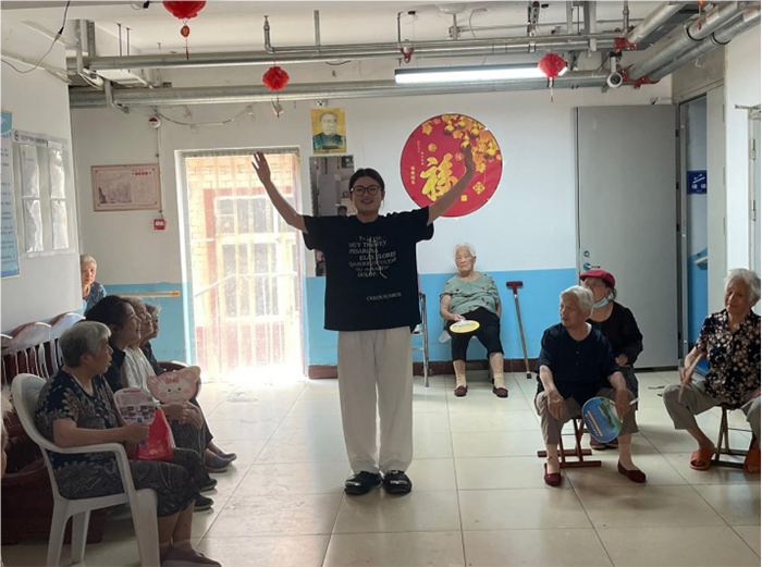 实践团成员们还为老人们准备了八段锦,唱歌和讲故事等活动与老人一起庆祝。老人们参与其中,其乐融融,成员们精彩的表演博得了老人们的阵阵掌声。气氛轻松愉快,充满欢笑。