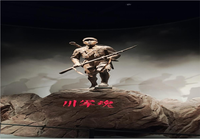 (图为成都博物馆历史文化陈列馆近世篇展馆,川军魂雕塑。通讯员 王柳仪 供图)