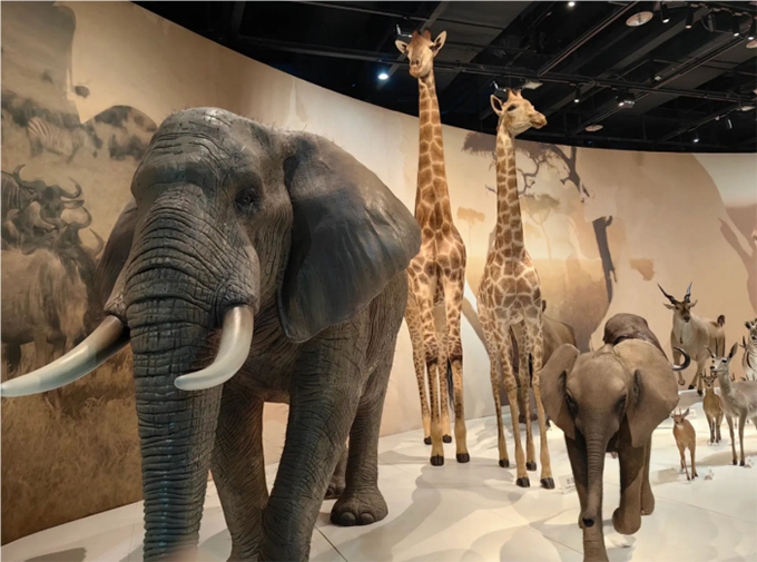 四、人与自然,美好画卷 最后,在我们即将离开之际,误下了B1楼层,却发现还有这样一个场馆——“贝林自然展”。它是成都博物馆建馆以来首个自然类主题展览,展出了300余件动物标本。这些标本来自不同大陆和生态系统,全方位地展示了自然界的多样性和奇妙性。展览通过科学的方法和生动的展示手段,向观众阐述了人与自然之间的关系,引导我们更加关注自然、保护自然。在这里,我们不仅欣赏到了狂野非洲、多样美洲、神奇南极等自然景观的壮丽与神奇,还通过互动体验的方式感受到了大自然的魅力与力量。