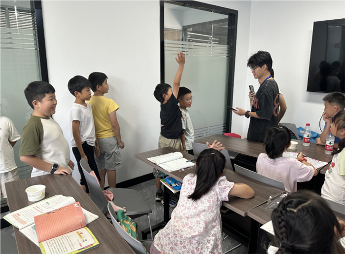 英语课上,老师采用互动式教学,鼓励孩子们大胆开口说英语。孩子们积极参与英语对话练习,课堂气氛十分活跃。有个孩子一开始不敢发言,但在老师的鼓励和同学的帮助下,逐渐克服了胆怯,勇敢地用英语表达自己的想法。