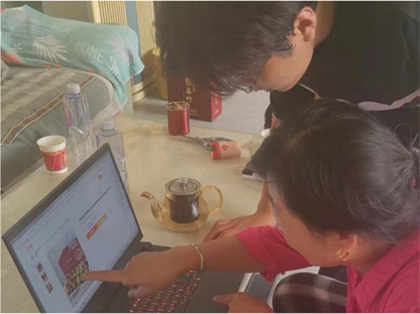 图为实践团成员赵靖于7月14日为村民进行互联网指导